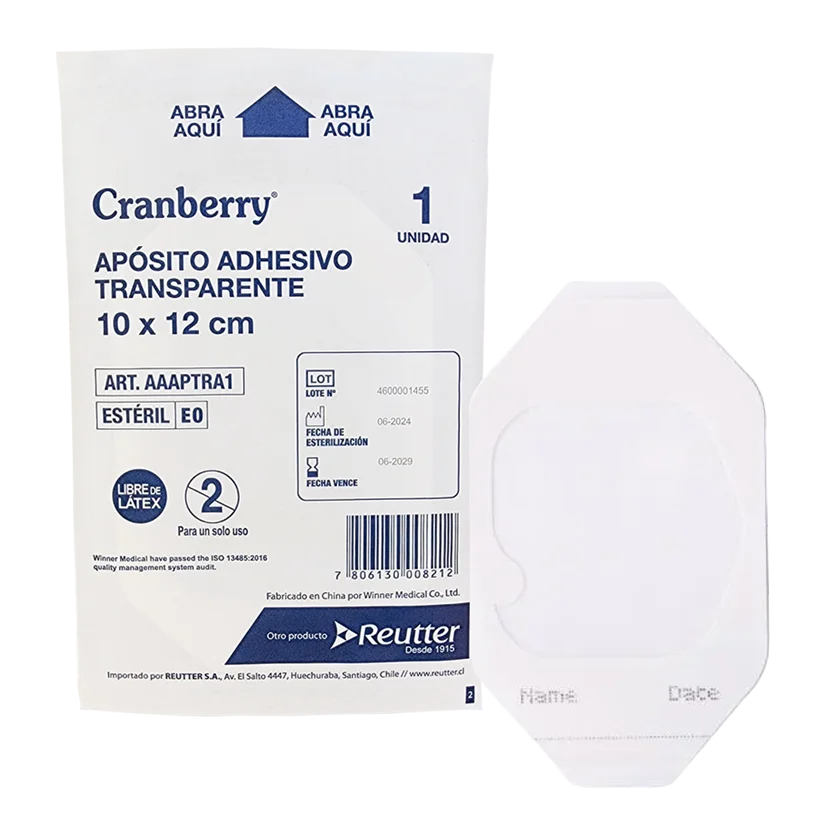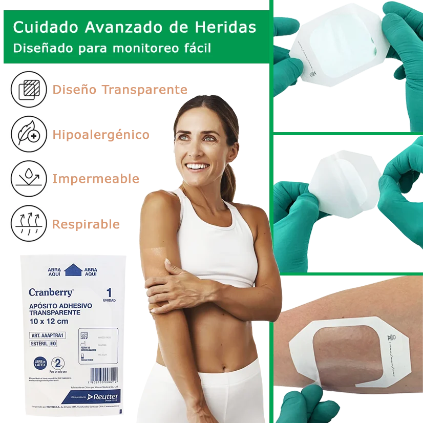 El apósito transparente es un apósito estéril que se usa de forma externa y temporal para cubrir y proteger heridas frente al medio ambiente, particularmente contra el agua, la suciedad y los microorganismos con el objetivo de mantener un entorno húmedo para la cicatrización de las heridas. Alternativamente puede usarse en o para fijar dispositivos a la piel (catéteres, vías, conectores, etc.).