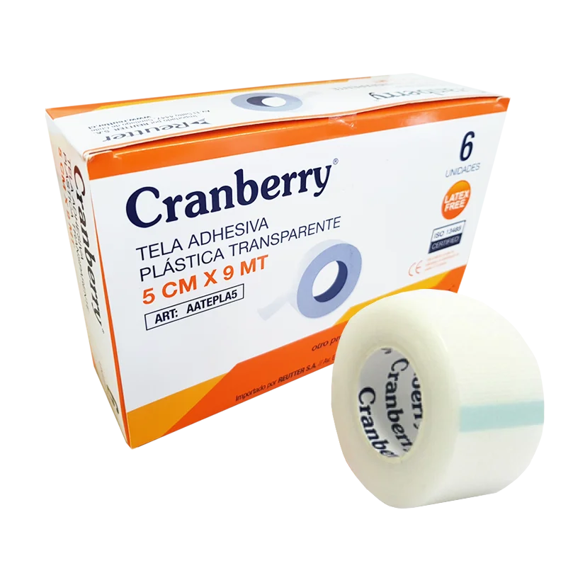 Las telas adhesivas plásticas transparentes Cranberry ® , son ideales para pieles sensibles. Su microporosidad permite que la piel respire. La cinta adhesiva plástica Cranberry ® está hecha a base de un material prepicado lo cual permite cortarla sin necesidad de tijeras para mayor comodidad del usuario.
